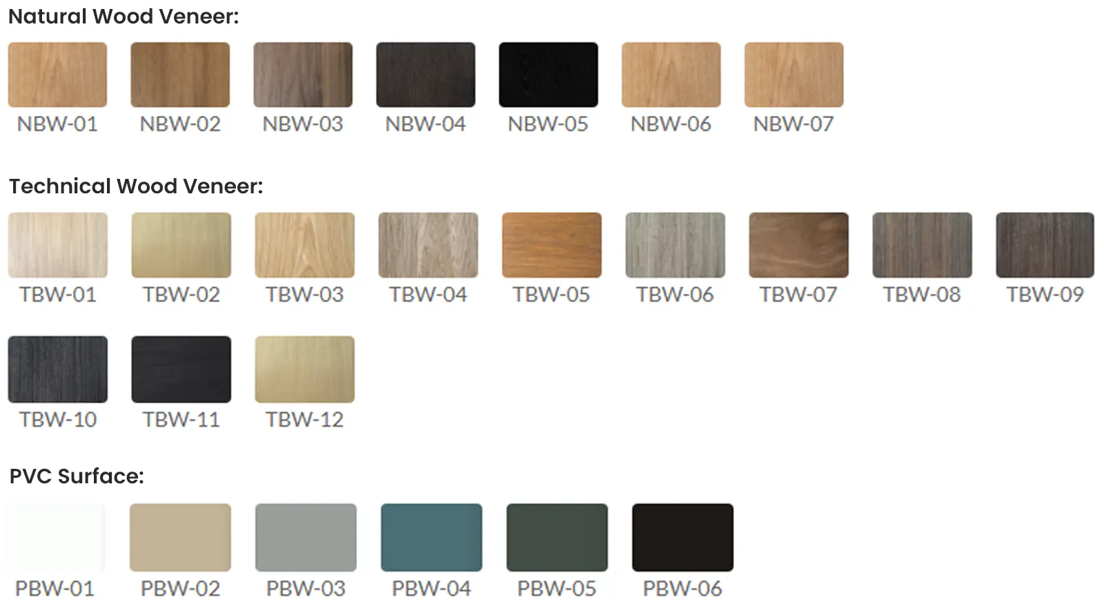 - Surface texture:Natural Wood Veneer/Technical Wood Veneer/PVC Surface